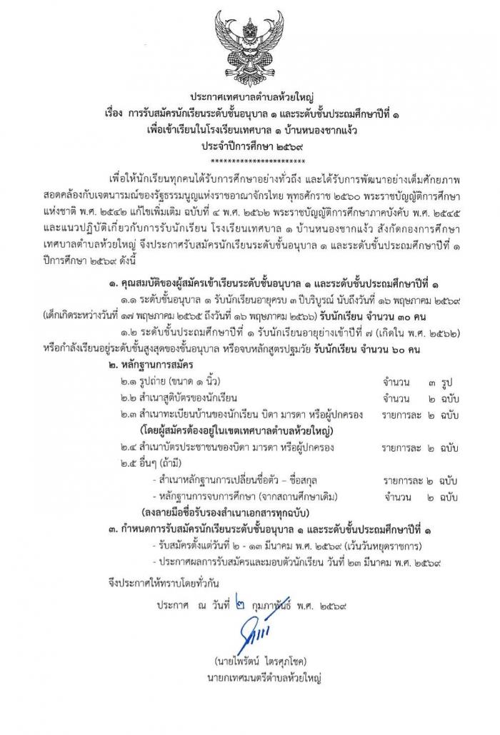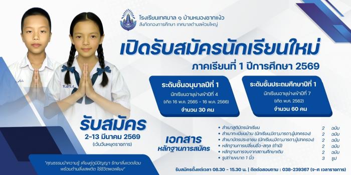 ประชาสัมพันธ์ การรับสมัครนักเรียนระดับชั้นอนุบาล 1 และระดับชั้นประถมศึกษาปีที่ 1 ภาคเรียนที่ 1 ปีการศึกษา 2569